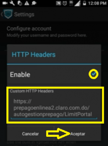 - En «Encabezados HTTP personalizados«, escriban lo que se muestra en la siguiente imagen.